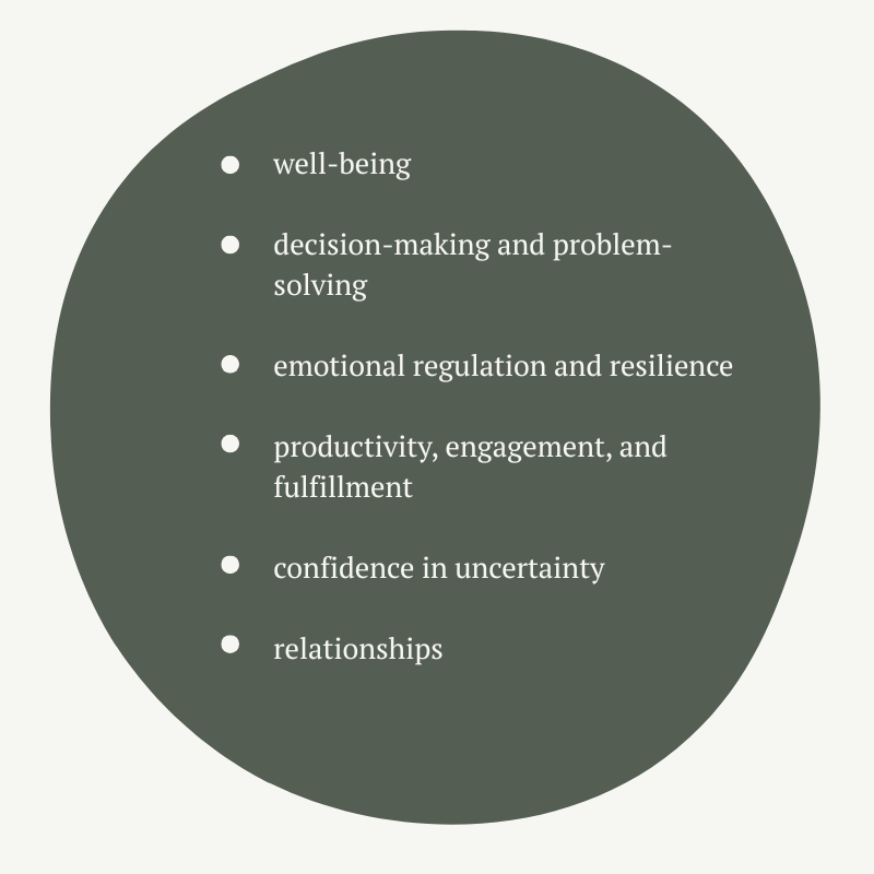 When your nervous system is stuck in fight-or-flight, even the best plans fall apart. We support change from the inside out and the outside in, helping you regulate your system, expand resilience, and build the capacity required to sustain growth under real-world pressure.